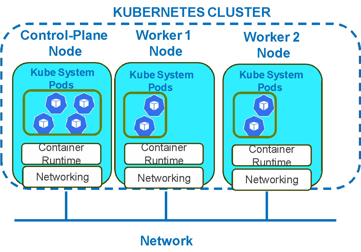 Let’s start by explaining the fundamentals of a Kubernetes cluster. A cluster consists of one or several nodes. A node can be a physical machine or a virtual machine. Each node has a role. Most common roles are control-plane and worker. It is mandatory to have at least one control-plane node.