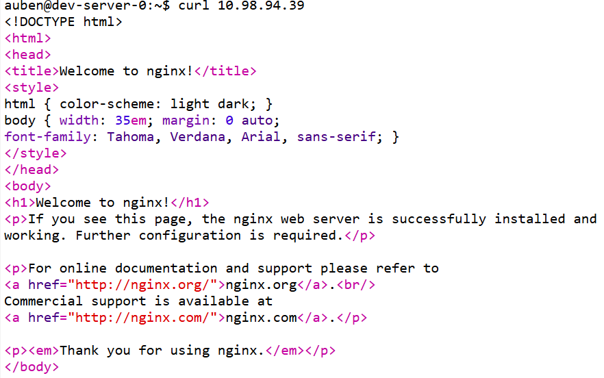 auben@dev-server-0:~$ kubectl apply -f nginx-service.yaml